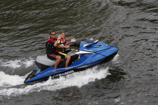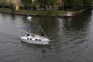 Statek białej floty m/s Elżbieta płynący po Motławie.