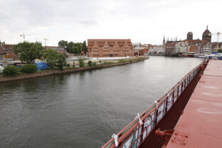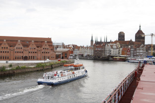 Rzeka Motława i panorama Gdańska widziana z pokładu statku m/s Lechia