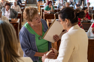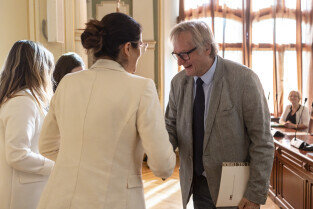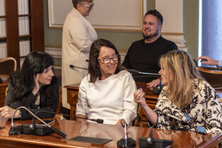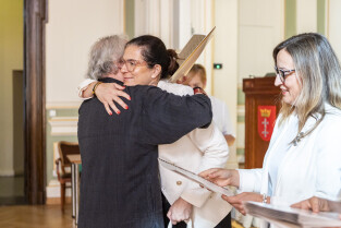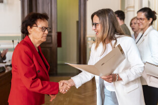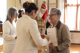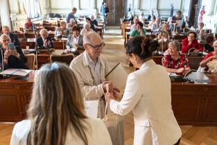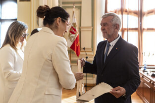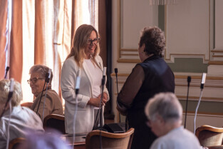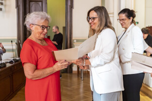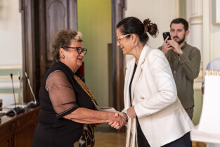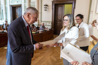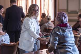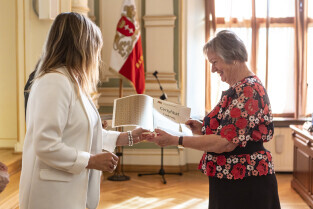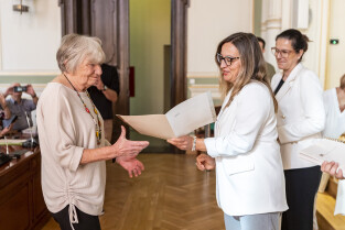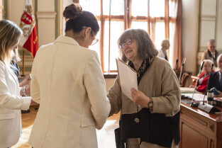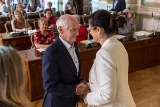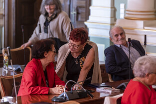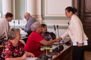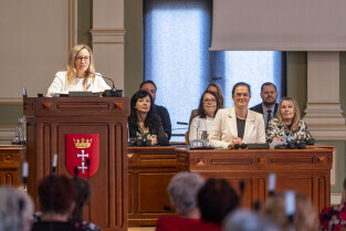 Gdańsk. Inauguracyjna sesja Gdańskiej Rady Seniorów nowej kadencji. W zaprzysiężeniu radnych udział wzięła Prezydent Aleksandra Dulkiewicz, Przewodnicząca Rady Miasta Agnieszka Owczarczak oraz radni.