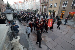 Gdańsk.Sesja Rady Miasta Gdańska, którą zwołano w związku z tragiczną śmiercią prezydenta Gdańska Pawła Adamowicza. Nz. Przemarsz do Europejskiego Centrum Solidarności.