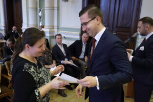 Gdańsk, Rada Miasta, Nowy Ratusz. Spotkania nowo wybranych Rad Dzielnic Gdańska. Radni odebrali zaświadczenia Miejskiej Komisji Wyborczej ds. Wyborów w Jednostkach Pomocniczych w Gdańsku.