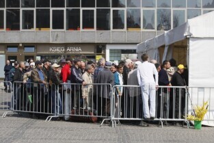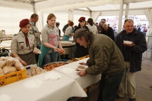 Wielkanocne śniadanie dla ubogich i bezdomnych zorganizowane przez gdańskich restauratorów. Gdańsk, Targ Węglowy