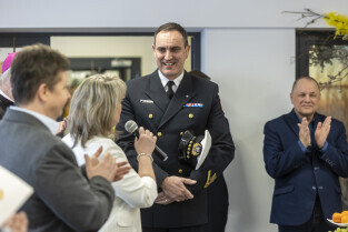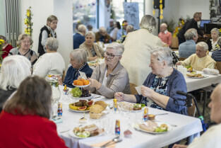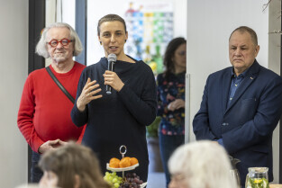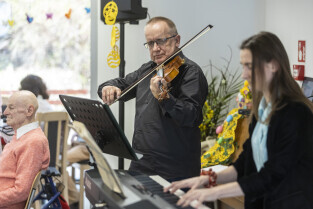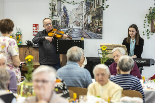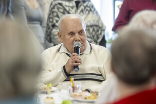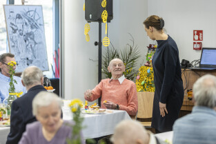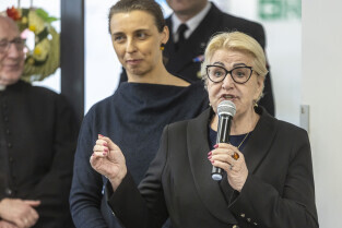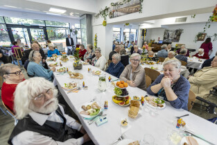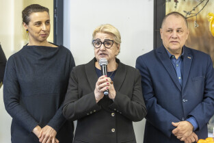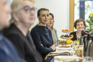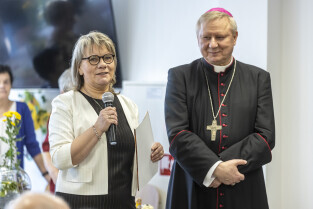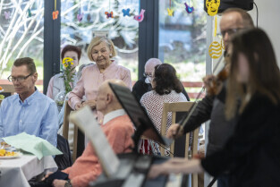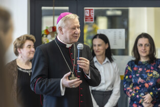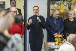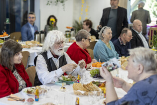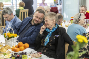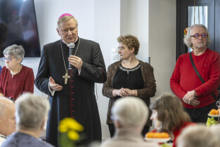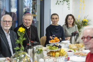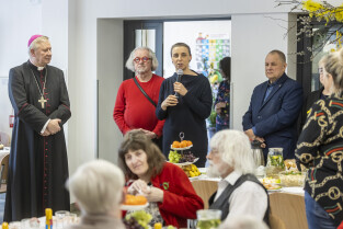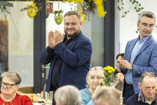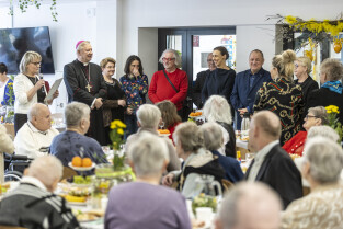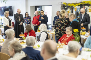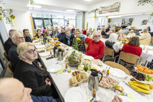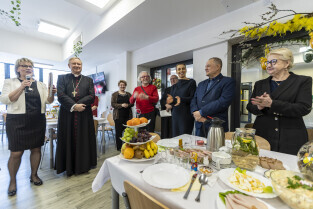 Śniadanie Wielkanocne w Domu Pomocy Społecznej na ul.Polanki z udziałem Moniki Chabior, Zastępczyni Prezydenta ds. rozwoju społecznego i równego traktowania, Teresy Wasilewskiej - Wiceprzewodniczącej Rady Miasta, radnego Andrzeja Stelmasiewicza oraz Biskupem Wiesławem Szlachetką