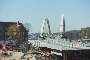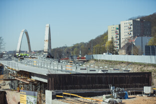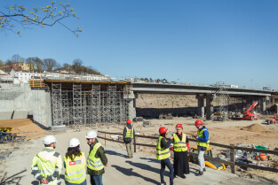 Gdańsk. Spacer po budowie Wiaduktu Biskupia Górka z udziałem prezydent miasta Aleksandry Dulkiewicz (Nz)