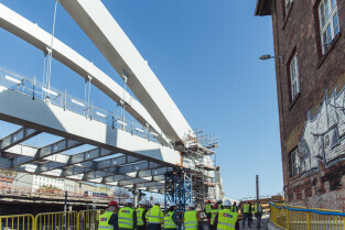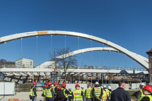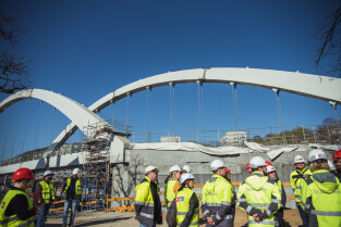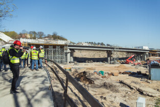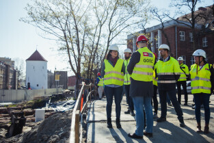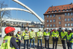 Gdańsk. Spacer po budowie Wiaduktu Biskupia Górka z udziałem prezydent miasta Aleksandry Dulkiewicz