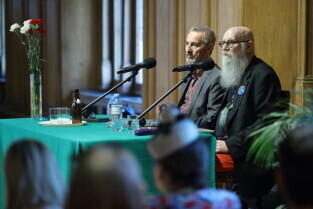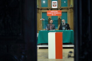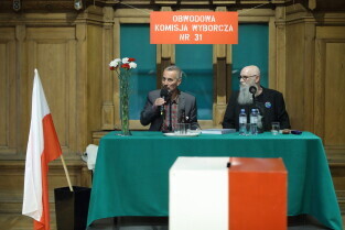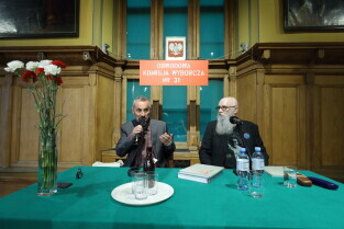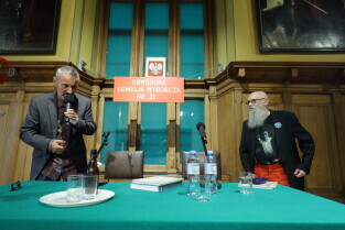 Gdańsk. Spotkanie autorskie z Mieczysławem Abramowiczem, twórcą książki „Kalendarz trzydziestolecia 1989-2019”. Nz. Przemysław Abramowicz i prowadzący Tomasz Olszewski.