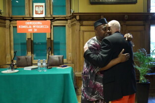 Gdańsk. Spotkanie autorskie z Mieczysławem Abramowiczem, twórcą książki „Kalendarz trzydziestolecia 1989-2019”. Nz. Larry Okey Ugwu-NCK.