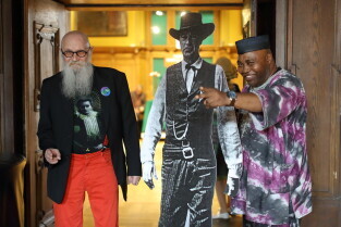 Gdańsk. Spotkanie autorskie z Mieczysławem Abramowiczem, twórcą książki „Kalendarz trzydziestolecia 1989-2019”. Nz. Mieczysław Abramowicz i Larry Okey Ugwu-NCK.