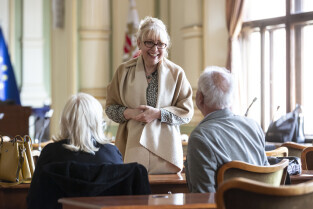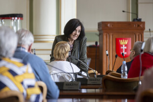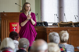 Gdańsk. Rada Miasta. Spotkanie z liderami grup nieformalnych polityki senioralnej. Nz. Zastępczyni Prezydenta ds. rozwoju społecznego i równego traktowania Monika Chabior.