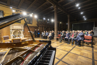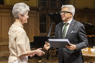 Gdańsk. W Ratuszu Staromiejskim odbyło się spotkanie z Laureatką Nagrody Naukowej Miasta Gdańska im. Jana Heweliusza – prof. dr hab. Hanną Mazur-Marzec. Nz. dr. hab. Waldemar Surosz, prof. UG