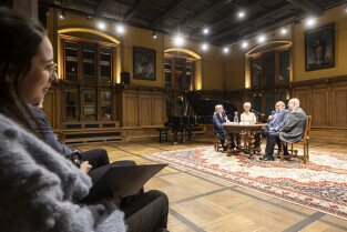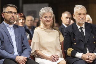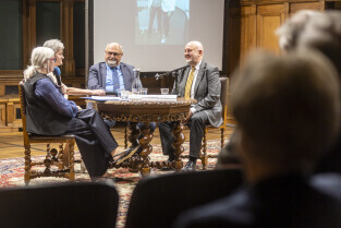 Gdańsk. W Ratuszu Staromiejskim odbyło się spotkanie z Laureatką Nagrody Naukowej Miasta Gdańska im. Jana Heweliusza – prof. dr hab. Hanną Mazur-Marzec. Nz. O pracy z panią Profesor opowiadają prof. dr. hab. Grzegorz Węgrzyn oraz dr. hab. Waldemar Surosz, prof. UG