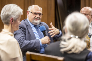 Gdańsk. W Ratuszu Staromiejskim odbyło się spotkanie z Laureatką Nagrody Naukowej Miasta Gdańska im. Jana Heweliusza – prof. dr hab. Hanną Mazur-Marzec. Nz. prof. dr. hab. Grzegorz Węgrzyn