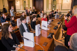Gdańsk, Nowy Ratusz. Świąteczne spotkanie stypendystów Fahrenheita