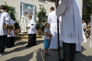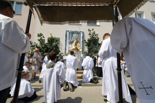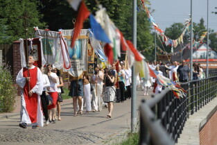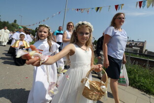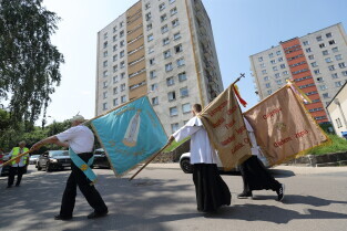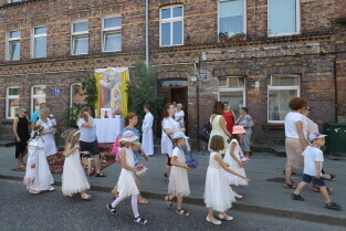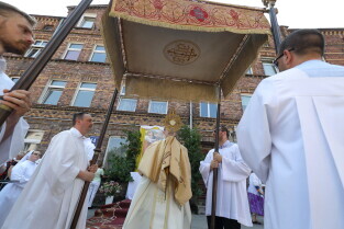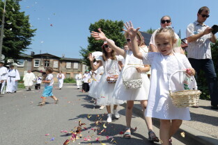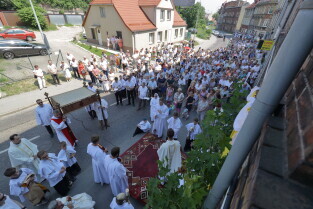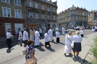 Gdańsk. Święto Bożego Ciała. Procesja wyruszła z Parafii św. Ignacego Loyoli z Najświętszym Sakramentem do czterech ołtarzy.