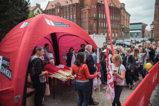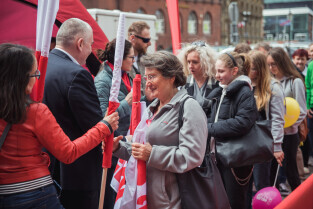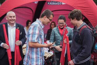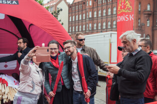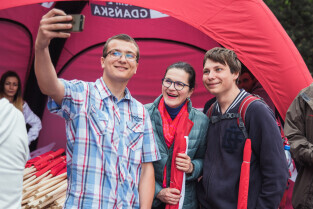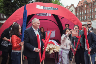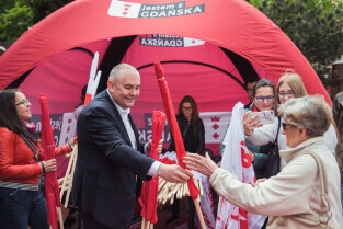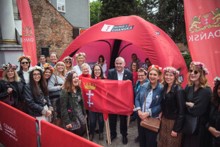 Święto Miasta - rozdawanie flag Gdańska