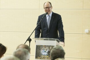 Gdańsk, Amber Expo. II Sympozjum pt. "Tunel drogowy pod Martwą Wisłą. Doświadczenia z budowy pierwszej rury tunelu". Nz. Prezydent Gdańska Paweł Adamowicz