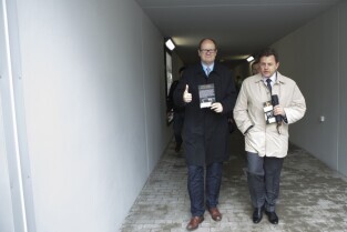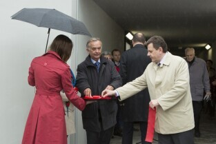 Otwarcie wyremontowanego i przedłużonego tunelu przy przystanku Szybkiej Kolei Miejskiej Gdańsk Przymorze-Uniwersytet. Nz. od lewej: Rektor Uniwersytetu Gdańskiego prof. Bernard Lammek i Prezes PKP Szybka Kolej Miejska Maciej Lignowski