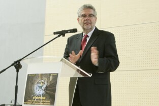 Gdańsk, Amber Expo. II Sympozjum pt. "Tunel drogowy pod Martwą Wisłą. Doświadczenia z budowy pierwszej rury tunelu". Nz. Podsekretarz Stanu w Ministerstwie Infrastruktury i Rozwoju Janusz Żbik
