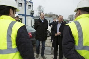 Budowa tunelu pod Martwą Wisłą w Gdańsku, pomiędzy Przeróbką i Letnicą. Maszyna TBM, która nosi imię "Damroka", obecnie drąży drugą nitkę tunelu. Nz. od lewej: Prezydent Gdańska Paweł Adamowicz i Prezes spółki Gdańskie Inwestycje Komunalne Ryszard Trykosko