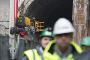 Budowa tunelu pod Martwą Wisłą w Gdańsku, pomiędzy Przeróbką i Letnicą. Maszyna TBM, która nosi imię "Damroka", obecnie drąży drugą nitkę tunelu. Nz. Prezydent Gdańska Paweł Adamowicz