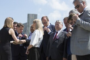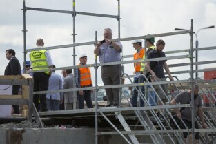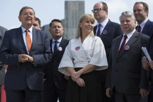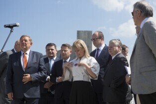 Uroczystość zakończenia drążenia tunelu drogowego pod Martwą Wisłą w Gdańsku, który połączy Przeróbkę i Letnicę. Obiekt drążyła maszyna TBM, której nadano imię „Damroka". Nz. od lewej: Prezes spółki Gdańskie Inwestycje Komunalne Ryszard Trykosko, Podsekretarz Stanu w Ministerstwie Rozwoju Regionalnego Paweł Orłowski, Wicewojewoda Pomorski Michał Owczarczak, Wicepremier RP, Minister Infrastruktury i Rozwoju Elżbieta Bieńkowska, Prezydent Gdańska Paweł Adamowicz, Marszałek Senatu RP Bogdan Borusewicz