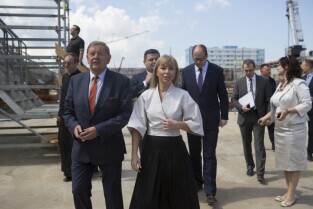 Uroczystość zakończenia drążenia tunelu drogowego pod Martwą Wisłą w Gdańsku, który połączy Przeróbkę i Letnicę. Obiekt drążyła maszyna TBM, której nadano imię „Damroka". Nz. Wicepremier RP, Minister Infrastruktury i Rozwoju Elżbieta Bieńkowska oraz Prezes spółki Gdańskie Inwestycje Komunalne Ryszard Trykosko