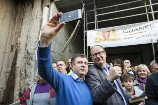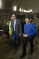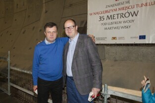 Gdańsk. Dzień Otwarty Tunelu pod Martwą Wisłą, podczas którego zwiedzający przeszli budowanym odcinkiem pomiędzy węzłami Marynarki Polskiej i Ku Ujściu. Nz. Prezydent Gdańska Paweł Adamowicz i Prezydent Sopotu Jacek Karnowski
