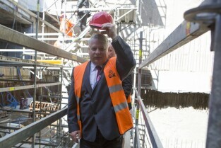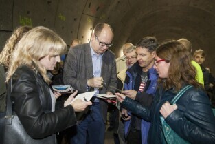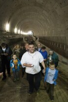 Gdańsk. Dzień Otwarty Tunelu pod Martwą Wisłą, podczas którego zwiedzający przeszli budowanym odcinkiem pomiędzy węzłami Marynarki Polskiej i Ku Ujściu. Nz. Prezydent Gdańska Paweł Adamowicz
