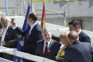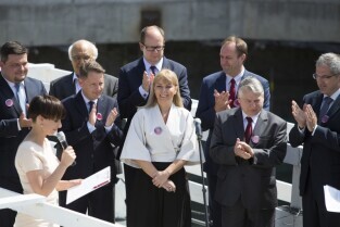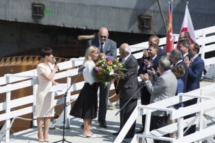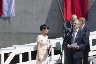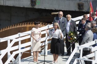 Uroczystość zakończenia drążenia tunelu drogowego pod Martwą Wisłą w Gdańsku, który połączy Przeróbkę i Letnicę. Obiekt drążyła maszyna TBM, której nadano imię „Damroka". Nz. Wicepremier RP, Minister Infrastruktury i Rozwoju Elżbieta Bieńkowska