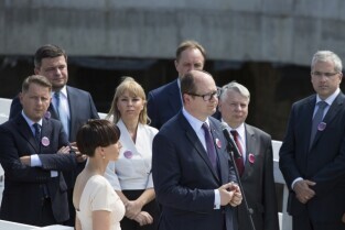 Uroczystość zakończenia drążenia tunelu drogowego pod Martwą Wisłą w Gdańsku, który połączy Przeróbkę i Letnicę. Obiekt drążyła maszyna TBM, której nadano imię „Damroka". Nz. Marszałek Senatu RP Bogdan Borusewicz