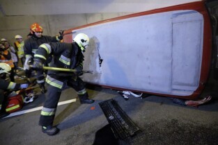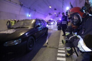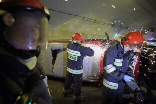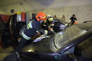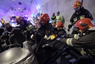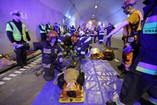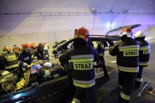 Gdańsk. W tunelu pod Martwą Wisłą odbyły się ćwiczeniach taktyczno-bojowe. Wzięli w nich udział strażacy, policjanci, ratownicy medyczni i pozoranci, w sumie ok. 70 osób oraz 20 pojazdów.