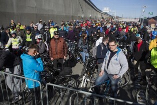 Gdańsk, tunel pod Martwą Wisłą. Rowerzyści podczas ostatniego dnia otwartego przed oficjalnym udostępnieniem obiektu.