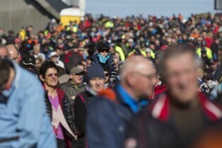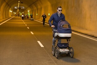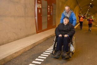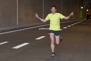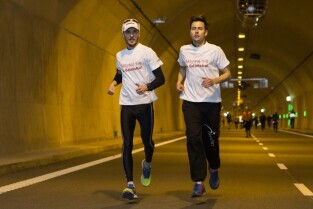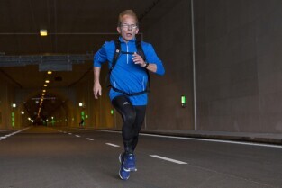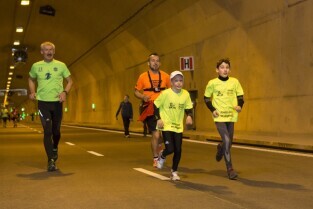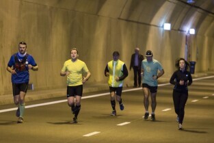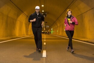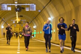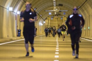 Gdańsk, tunel pod Martwą Wisłą. Biegacze podczas ostatniego dnia otwartego przed oficjalnym udostępnieniem obiektu.