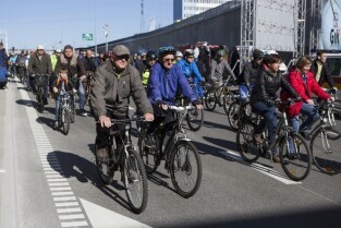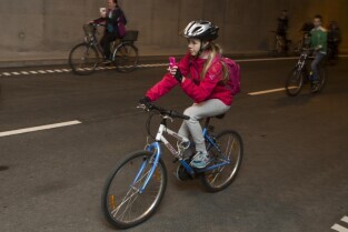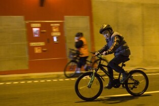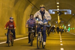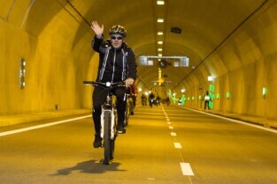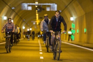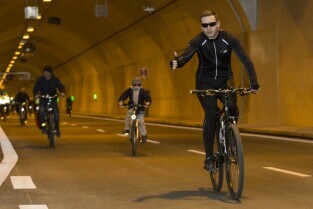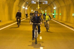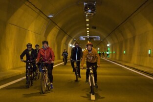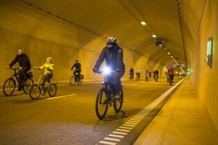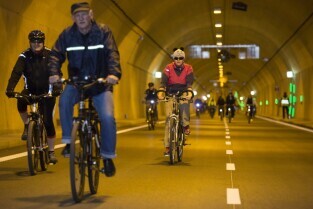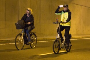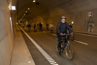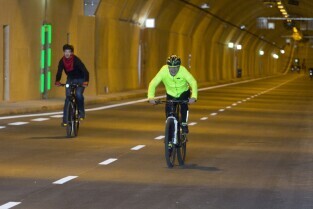 Gdańsk, tunel pod Martwą Wisłą. Rowerzyści podczas ostatniego dnia otwartego przed oficjalnym udostępnieniem obiektu.