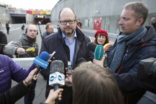 Otwarcie dla ruchu samochodowego tunelu pod Martwą Wisłą w Gdańsku. Nz. Prezydent Gdańska Paweł Adamowicz