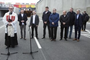 Otwarcie dla ruchu samochodowego tunelu pod Martwą Wisłą w Gdańsku. Nz. od lewej: Proboszcz Parafii Św. Anny i Joachima w Gdańsku Letnicy ks. Zbigniew Drzał, Członek Zarządu Woj. Pomorskiego Ryszard Świlski, Paweł Czeczko (zwycięzca licytacji WOŚP na pierwszy przejazd tunelem), Poseł na Sejm RP Adam Korol, Prezes Gdańskich Inwestycji Komunalnych Ryszard Trykosko, Wiceprezes GIK Romuald Nietupski, Dyrektor ZDiZ Mieczysław Kotłowski, Radny Gdańska Andrzej Kowalczys