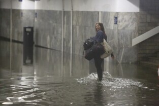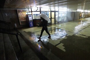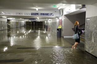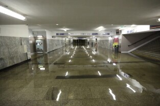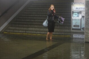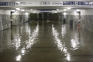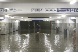 Ulewa w Gdańsku, podtopione ulice, tunele i budynki. Nz Tunel na dworcu PKP Gdańsk Główny.