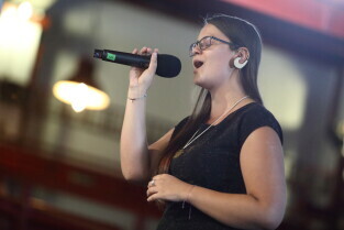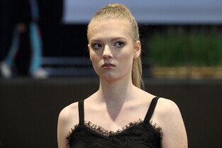 Gdańsk. Targi Mody i Designu Motywy. Nz. Występ Aleksandry Nowickiej.