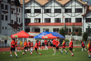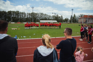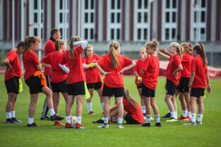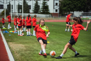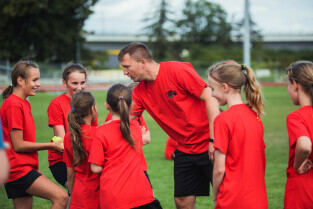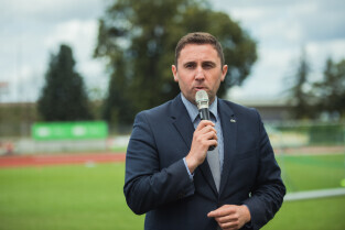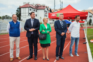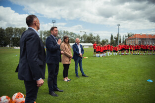 Gdańsk, Stadion Lekkoatletyczny przy Alei Grunwaldzkiej. TOP Talent dla młodych piłkarek nożnych. Nz. wiceprezydent Piotr Borawski