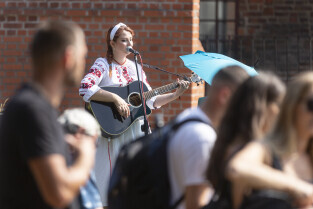 W ramach tzw. interwencji artystycznych w czterech lokalizacjach miasta: przed wejściem do Dworu Artusa, na placu im.Dariusza Kobzdeja, skwerze Heweliusza i w Ratuszu Staromiejskim, sztuką dzielili się artyści z Ukrainy.