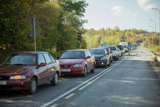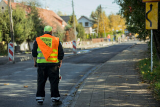 Gdańsk. ul. Świętokrzyska, wyłączony pas ruchu w stronę Kowal