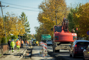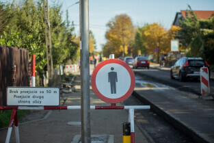 ul. Świętokrzyska, wyłączony pas ruchu w stronę Kowal
