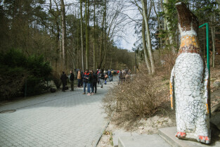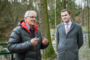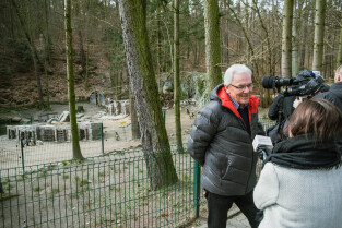 Gdańsk, Gdański Ogród Zoologiczny. Unikatowy pingwin albinos w ZOO. Dyrektor Gdańskiego Ogrodu Zoologicznego Michał Targowski i Wiceprezydent Piotr Grzelak