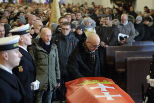 Gdańsk, Bazylika Mariacka. Uroczysta msza święta w intencji tragicznie zmarłego Prezydenta Pawła Adamowicza. Nz. Prezydent Gdyni Wojciech Szczurek.