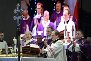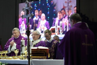 Gdańsk, Bazylika Mariacka. Uroczysta msza święta w intencji tragicznie zmarłego Prezydenta Pawła Adamowicza. Nz. Arcybiskup Sławoj Leszek Głódz.