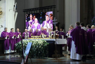 Gdańsk, Bazylika Mariacka. Uroczysta msza święta w intencji tragicznie zmarłego Prezydenta Pawła Adamowicza. Nz. Ks. Ireneusz Bradtke.