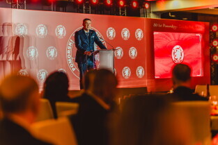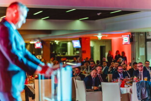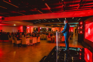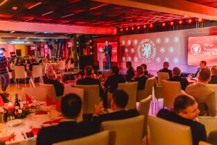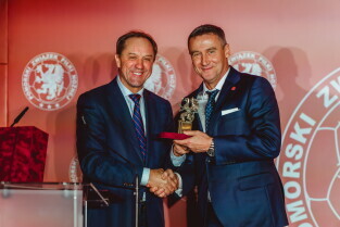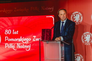 Gdańsk. Na stadionie Polsat Plus Arena odbyła się uroczystość jubileuszowa z okazji 80-lecia Pomorskiego Związku Piłki Nożnej.