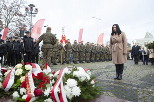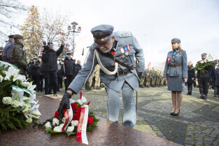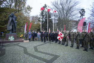 W przeddzień obchodów Święta Niepodległości władze miasta na czele z panią Prezydent Aleksandra Dulkiewicz wraz z przedstawicielami władz wojewódzkich, służb mundurowych, oraz zaproszonymi gośćmi uczcili zbliżającą się rocznicę poprzez złożenie kwiatów pod pomnikiem Marszałka Józefa Piłsudskiego - Naczelnika Państwa Polskiego