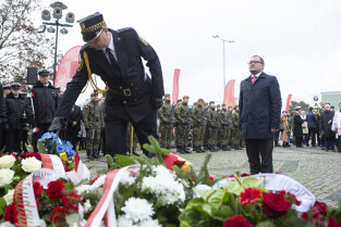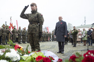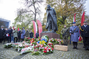 W przeddzień obchodów Święta Niepodległości władze miasta na czele z panią Prezydent Aleksandra Dulkiewicz wraz z przedstawicielami władz wojewódzkich, służb mundurowych, oraz zaproszonymi gośćmi uczcili zbliżającą się rocznicę poprzez złożenie kwiatów pod pomnikiem Marszałka Józefa Piłsudskiego - Naczelnika Państwa Polskiego