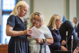 Gdańsk. V Sesja Rady Miasta. Nz. Radne Marta Magott i Żaneta Geryk